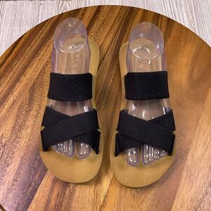 Roxy Women's 8.5 Open Toe Tan Black Cork Canvas Sandals Slides Beach