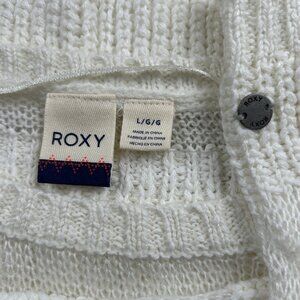 Roxy Women's/Teen White Pullover Top. Pretty crochet pointelle top has a round neckline and 3/4 sleeves. 69% Cotton 31% Acrylic Size L (25" PtP x 22" L x 16" L Sleeves - shoulder seam to cuff) In New Excellent Condition.