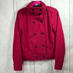 Roxy Y2K Wool Blend Double Breasted Cozy Winter Red Outdoor Peacoat Jacket