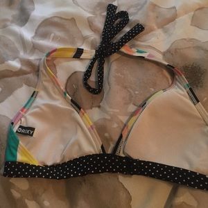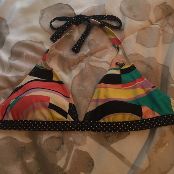Here I am selling a woman's roxy bikini top in great condition. It comes padded and is very comfy. The straps around the neck and the rib cage are both adjustable too!