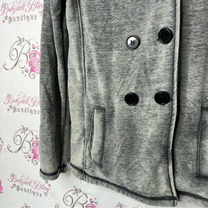 Roxy coat jacket sweater cardigan grey distressed Double-Breasted Pea Coat