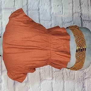 Roxy -Flowy fabric -Deep V-neck -Elastic empire waist -Peplum hem -Cropped -Unworn condition B1074