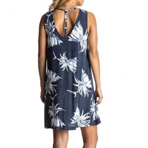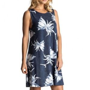 Roxy floral Print Sun Dress Swim Cover Navy Blue Viscose Womans size small