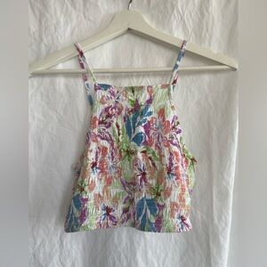 This vibrant floral top features a mix of colors, perfect for adding a pop to your wardrobe. Ideal for casual outings or a day at the beach.