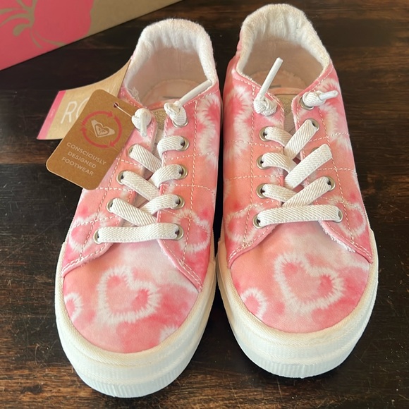 New in box girl’s Roxy tie dye pink with hearts shoes.