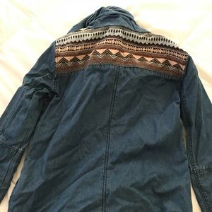 Jean jacket, zip off hoodie, lightly worn