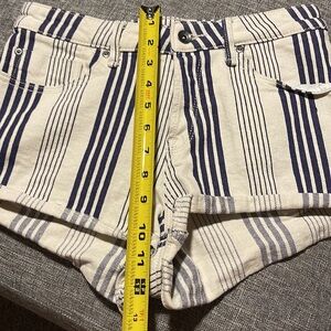 Super fun Roxy jean shorts white and blue stripes with no stains or rips and from non smoking home size 29