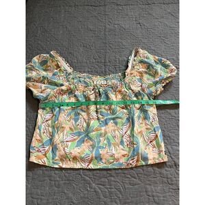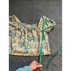 Roxy leaf tropical floral print crop top puff sleeve wide leg pant set medium
