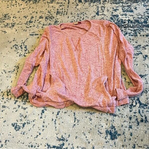 Roxy scoop neck slub knit long sleeve pull over with pockets medium pink / red
