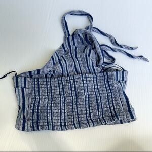 Roxy striped halter crop top with front cutout smocked back blue stripes sz Med