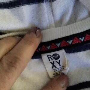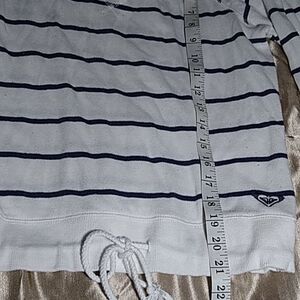 White with blue stripes hoody. GUC , small stain inside by tag, pictured. Measurements shown.