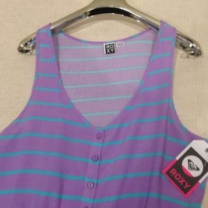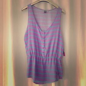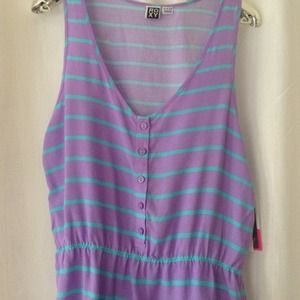 Pretty bright tank, purple with blue stripes. Buttons and elastic waist. New.
