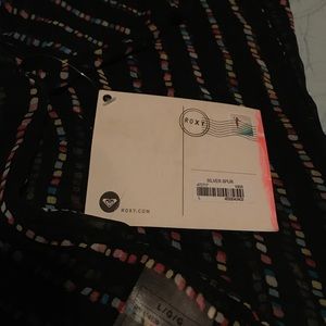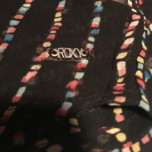 This adorable black, sheer Roxy top with a colorful pattern is perfect for everyday wear! It is brand-new and never worn! It is a size Large and has a front pocket.