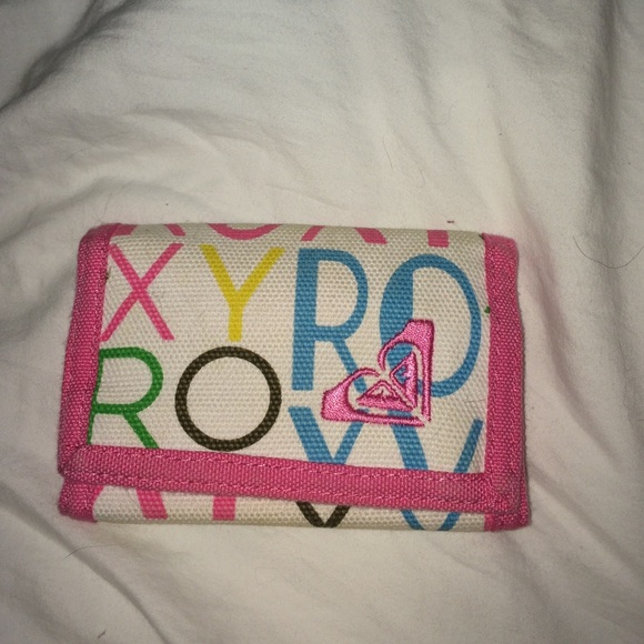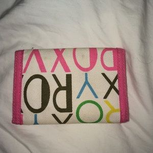 Roxy wallet, pink interior, good condition, credit card pockets, change pocket, full size money pocket, clear ID pocket