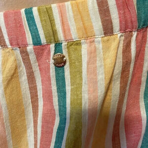 Roxy women’s midi small dress stripe spaghetti linen white yellows pink beach