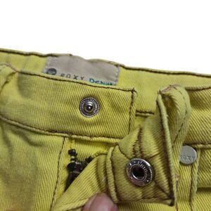Roxy Denim Mustard Yellow Girl shorts 10/12. Adjustable. 10" waist. 8" total length on side. 2" inseam. EUC. Run small, see measurements. 5oz