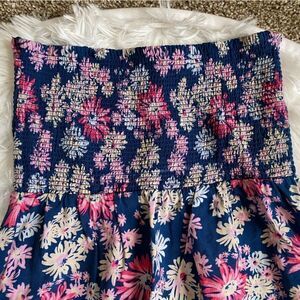 Roxy Floral Strapless Dress Blue Multicolor Elastic Stretchy Top Womens Sz Small