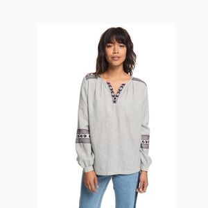 Roxy Timing Matters Long Sleeve Embroidered peasant blouse