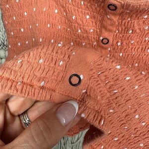 Roxy orange polkadot faux button front spaghetti strap top size medium. Preowned. Great condition and super stretchy. Adjustable shoulder straps. Ruched bodice for the most flattering fit!
