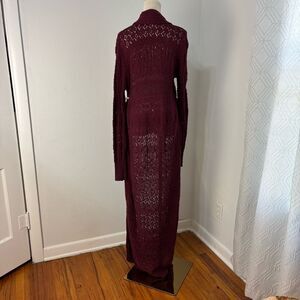 Roxy Vtg Y2K Longline Sweater Duster Large Burgundy Loose Knit Crochet Fall Beachy Cozy Streetwear