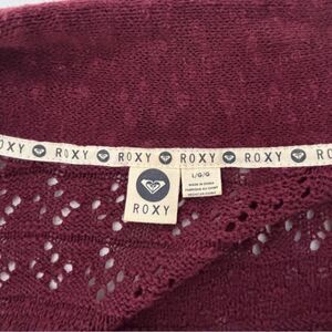 Roxy Vtg Y2K Longline Sweater Duster L Burgundy Loose Knit Crochet 2000s Beachy