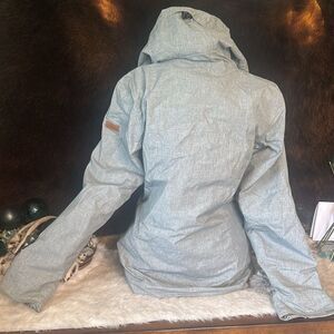 Embrace the slopes with the Roxy Gray Ski Jacket, featuring a weather-resistant material and an integrated hood for optimal protection. This jacket offers a sporty style with a sleek, textured finish, ensuring both functionality and fashion on your winter adventures.