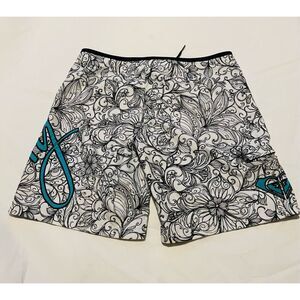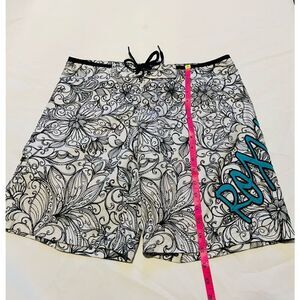 Roxy Y2K black and white women's tom boy board shorts. Measurements in photos as shown