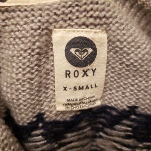 EUC size XS gray and seafoam green Roxy button cardigan. Slightly oversized. Has front pockets. Fun Aztec print.