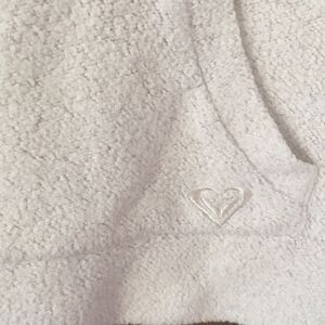 Comfy Roxy pullover hooded sweatshirt. Missing the hood pull string. Otherwise great condition!! Sz L. Off white color outside. Light grey sweatshirt material on inside.