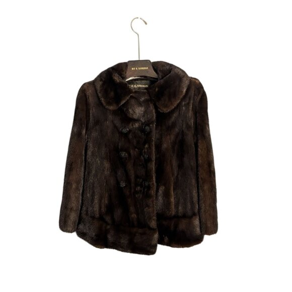 Roy H. Bjorkman Vintage Brown Mink Fur Double-Breasted Car Coat Collar pockets