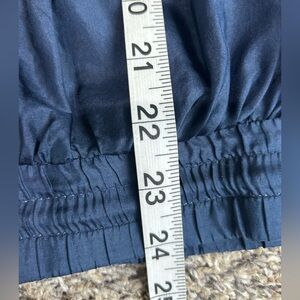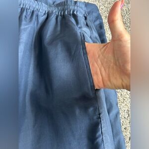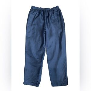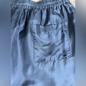 Pants are loose fitting men’s size medium matching silk with drawstring elastic waistband. Side pockets as well as one back pocket.