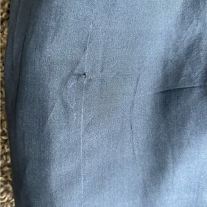 There is a spot on the left thigh of the pants and a fabric pull on the back. Last two photos show those.