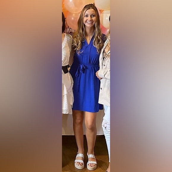Short sleeve dress in royal blue! Fancy enough for special occasions and cute enough for dinner or just going out or even work. Worn one time, like new!
