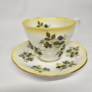 Royal Albert Bone China Horizon Tea Cup & Saucer Set Yellow Floral Design Vtg