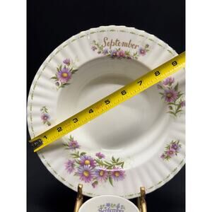 Celebrate September with this beautiful vintage set, featuring a Royal Albert "Flower of the Month" bowl adorned with delicate Michaelmas Daisies, paired with a Duchess Bone China teacup also honoring September's birth flower. Both pieces showcase vibrant floral designs on fine bone china, making this a perfect gift for September birthdays or floral china collectors.