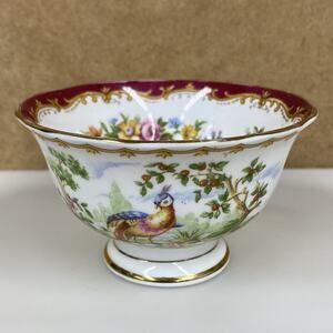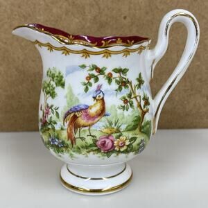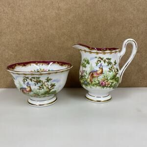 Royal Albert Creamer & Open Sugar Chelsea Bird Maroon Multicolor w/Gold 1940's