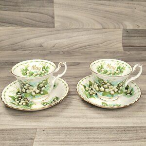 Royal Albert Flower of the Month May Lily of the Valley LOT of 2 Teacup & Saucer