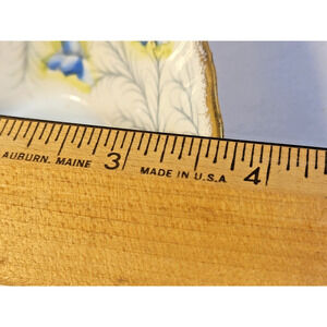 The Royal Albert Heather Bell Small Candy Bowl is a vintage piece of bone china, featuring a beautiful design with blue flowers and gray stems. Made in England by the renowned brand Royal Albert, this candy dish exudes elegance with its white color and gold trim. The candy bowl stands at 5.5" in length and 3.5" in width, making it a charming addition to any home decor. Crafted using traditional porcelain china production techniques, this original vintage piece showcases the craftsmanship and intricate details that Royal Albert is known for. Please look at all the photos as they are part of the description. Please email with any questions.