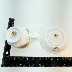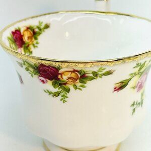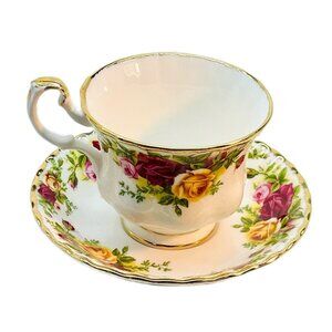 Gilded Cup & Saucer Set In Classic Royal Albert OLD COUNTRY ROSES Pattern. Porcelain Fine Bone China Approximate SizeCup 4.5" Wide With The Handle 3.5" Tall 3.5" Diameter At The Top. Saucer 5.5" Diameter 1" Tall.
