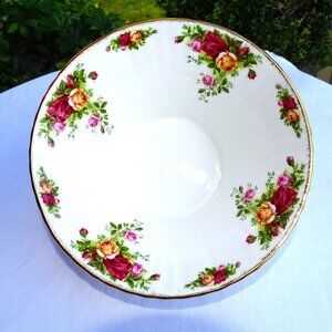 The Royal Albert Old Country Rose Fluted Bowl is a vintage centerpiece bowl crafted from bone china in England in 1962. The round bowl features a classic design measuring 9 5/8" x 5". Perfect for your dinner table or display cabinet. Condition is very good!
