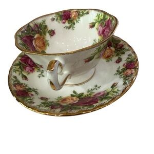 Royal Albert Old Country Rose Pedestal Tea Cup and Saucer 1962 Made in England- Bone china. Excellent condiion