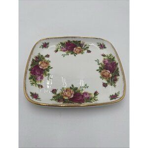 Royal Albert Old Country Roses Trinket Tray Jewelry Pin Dish Plate Square 6"