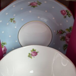 Royal Albert Pink Rose Polka Blue Teacup & Saucer Set New in Box