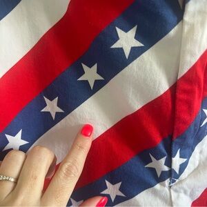 Play a round of golf in these fun Patriotic shorts. There are some light marks and pointing in photos, but very light. More on the high traffic areas of the pocket and belt loop. Size 42