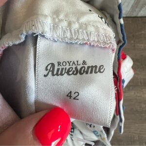 Royal & Awesome Red and White Golf Shorts with Patriotic Stripes 42