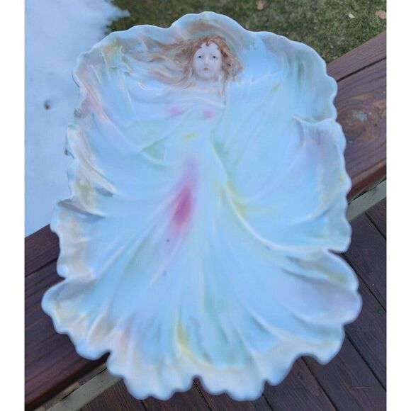 Royal Bayreuth Art Nouveau Lady Figural Woman Dresser Tray Bavaria Blue Mark 10"