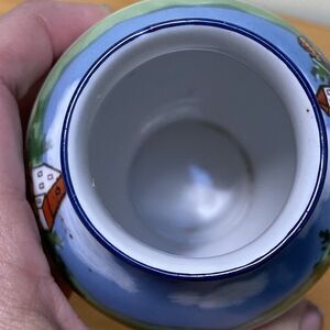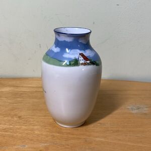 The Royal Bayreuth Bavaria Porcelain Vase is a vintage piece featuring hand-painted village life motifs in a multicolor palette. Made of porcelain and standing at 5 inches tall, this decorative vase showcases a charming landscape theme in the style of art pottery. Produced in Germany, it bears the printed Royal Bayreuth backstamp and has a glossy finish, adding a touch of elegance to any home decor. Perfect for adding a touch of Bavarian craftsmanship to your living space, this vase is an original piece that captures the essence of village life in a beautifully hand-painted design.