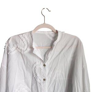 Royal Belle Shirt White Large Button Front Heart Oversized Lightweight Blouse To