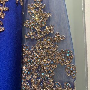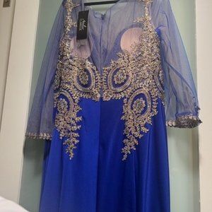 Size 22, Royal Blue with Beautiful embellishment. 12" train Paid $695.00 plus shipping. Stunning! Never worn.