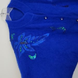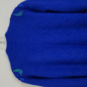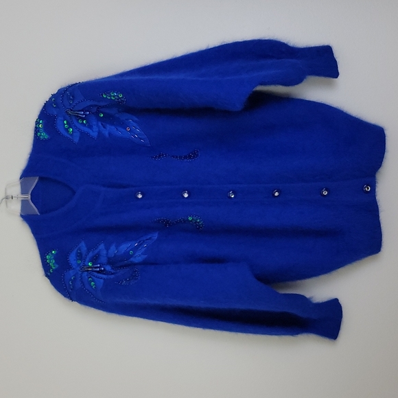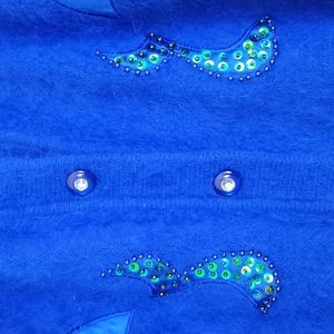 Royal Blue Beaded & Sequins Angora Cardigan M